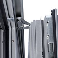 Funktionelle Verbindungen gewährleisten eine stabile Verbindung im Eckbereich. Wunderbar angepasste Schutzelemente ermöglichen eine flexible Verarbeitung der Schwelle und verbessern dadurch die Ästhetik. Die niedrige Schwelle von HS PORTAL reduziert außerdem wirksam den Wärmeverlust. Mit HS-PORTAL erhalten Sie auch eine serienmäßig montierte Microlüftung des Raumes, die mit dem Türgriff reguliert werden kann. Die Grundstandardbeschläge bieten bereits Sicherheit, mit der Möglichkeit des Ausbaus bis zur Sicherheitsklasse WK2.