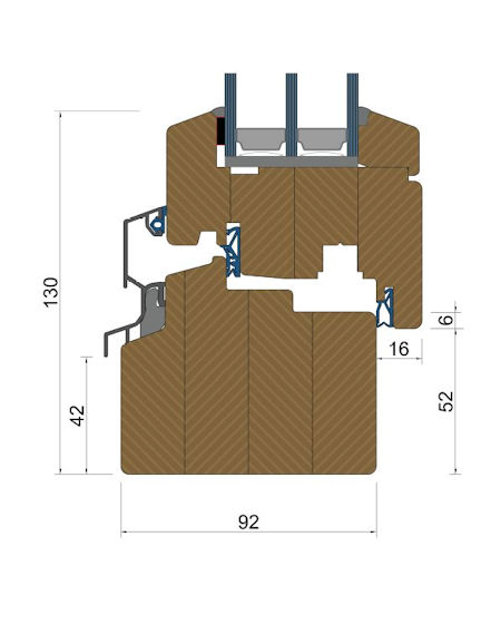- Die Rahmen und Flügel der IV-92 Softline-Profile sind aus ausgewählten vierschichtig verleimten Hölzern gefertigt.